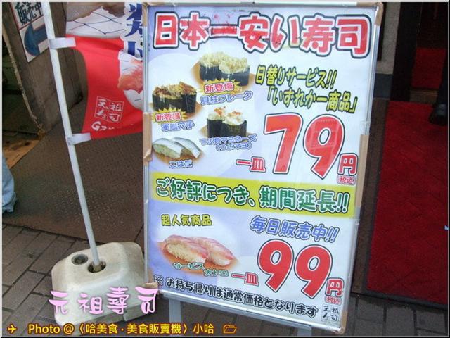 到了淺草上野一帶,看了一下決定吃這大眾路線的〈元祖壽司〉迴轉壽司店...