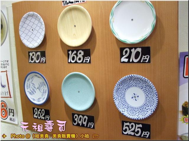 有著不同顏色的日幣99、130、168、210、262、399、525..元,不等價位的盤子。